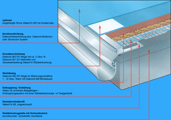Beton und Zementestrich sind aus Kosten- und Konstruktionsgesichtspunkten die häufigsten Untergründe auf Balkonböden. Wie alle waagerechten Außenbauteile brauchen sie eine zusätzliche Schutzschicht, um allen Anforderungen genügen zu können.